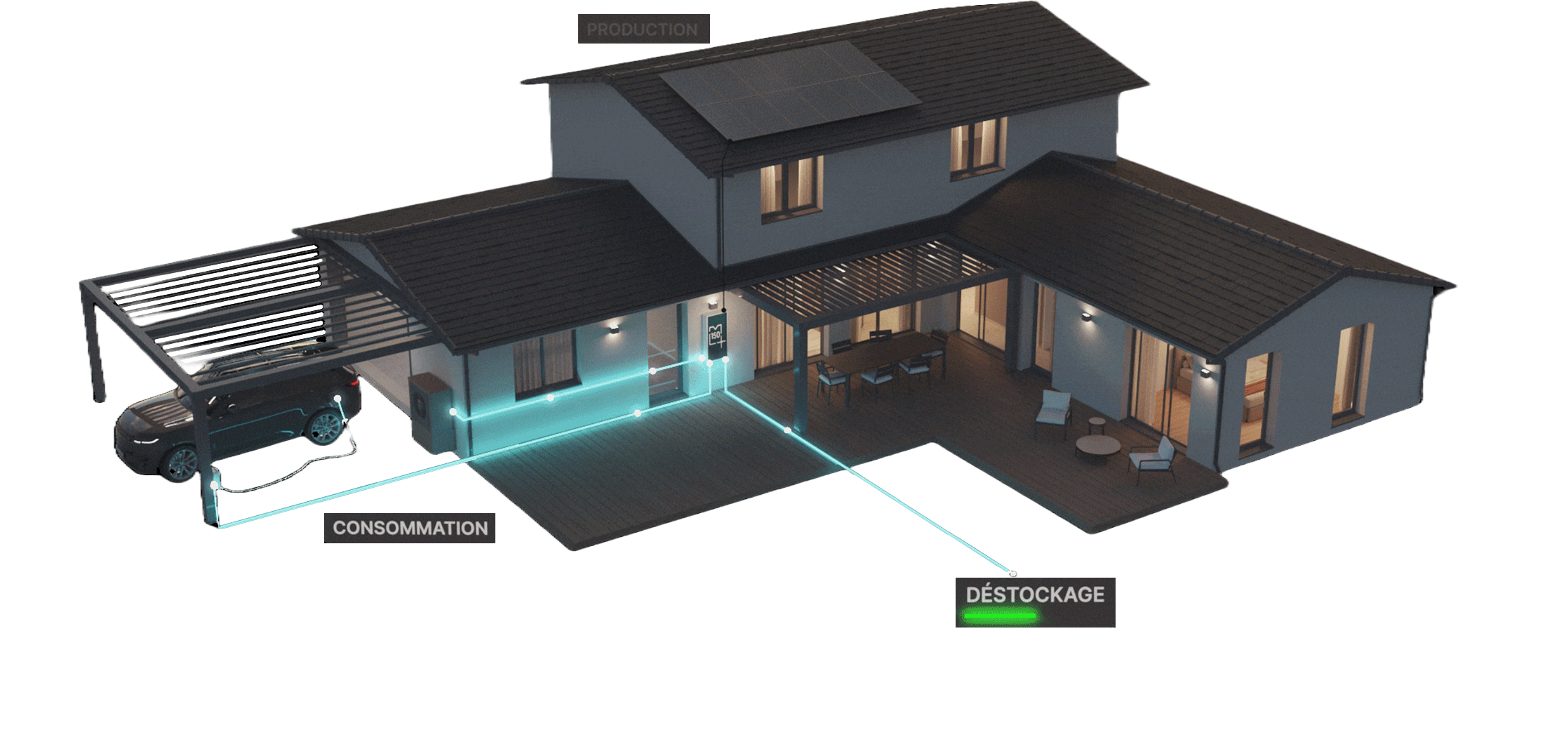 +d'Autonmie + d'Economie - 0 contrainte: Vous réduisez jusqu'à 80% de votre facture d'électricité, gagnez en autonomie, et profitez de l'énergie solaire produite, stockée et utilisée chez vous.